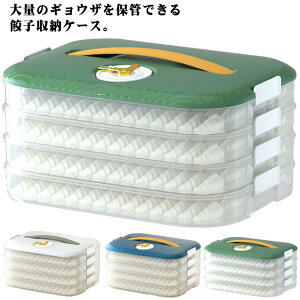 大量のギョウザを保管できる餃子収納ケース。自宅で一度にたくさんのギョーザを作った後の冷凍保存容器に大変便利。ケースの底部分は特殊加工で、餃子がくっつかないから冷凍して保管しやすい。仕切りない設計で、どんな大きさもラク