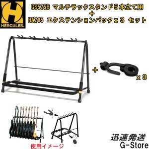 GS525B+HA205】 5本立てギタースタンド+拡張アダプターセット HERCULES GS525Bは、アコースティックギター、エレキギター、エレキベースを5本スタンドできるマルチギタースタンドです。さらに、拡張ア...