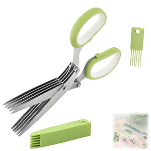 ・ 【効率的な5枚刃設計】5層のステンレス刃が同時にカットすることで、包丁や単刃はさみよりも素早く均一に刻めます。人間工学に基づいたカーブ形状のグリップで持ちやすく、長時間の使用でも疲れにくいむてきはさみです...