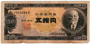 ■商品説明■ 発行:昭和26年12月1日(1951) 図案:高橋是清と日本銀行 大きさ:68mm×144mm ※お届けする紙幣は、画像のものと記号・番号が異なります。