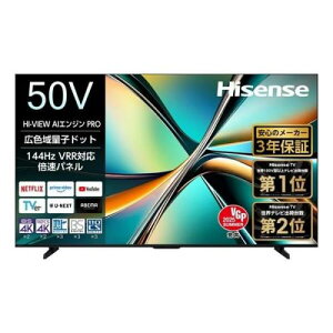 ハイセンス・ジャパン 50V型 4Kチューナー内蔵液晶テレビ U6Rシリーズ 50U6R。・AIがさまざまな高画質調整をしてくれる「HI-VIEW AIエンジン PRO」。・迫力のサウンドで楽しめる2.1重低音サウンドシステム...