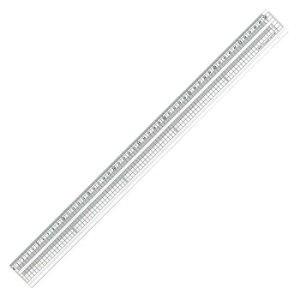 両側に目盛りがついた、透明度が高く様々な場面で視認性の高さを発揮する直線定規です。●材質:アクリル ●厚さ:3mm ●両側目盛り付