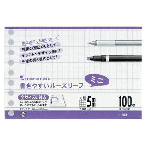 離島へのお届けは別途送料がかかります。詳しくはこちらマルマン B7変形サイズ ルーズリーフ 5mm方眼罫 L1432(100セット)特徴:ファイルノートの全てのサイズに使えて、どの場所にも綴じられる、便利なメモサイズのルーズ