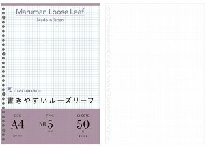 マルマン ルーズリーフB5 26穴 50枚入 5mm方眼◆主な特長色々な筆記具に対応し、裏抜けしにくく、にじみが少ない、とても書きやすいルーズリーフを作りました。学校で、仕事で、プライベートで、毎日ストレス無くお使いいただける便