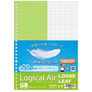 ノートが軽いと心も軽い!厚みが同じで軽い「ロジカル・エアー・ルーズリーフ」■従来商品より約20%軽量化。■本文には厚みはそのまま・裏うつりは従来品と同様。■4つの特長で文章が美しく見せるロジカルノート...