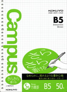 方眼罫/-/-・パッケージ個数:2・キャンパスルーズリーフ さらさら書ける 5mm方眼罫 B5 50枚 ノ-837S-5 2個セット●書き心地で選べる/筆記時の力の強さや筆記速度、よく使う筆記具などにより...