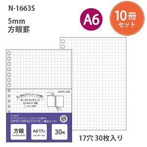 【10冊セット】リヒト オープンリングノート・ツイストノート 適合リーフ A6 17穴 30枚入り×10冊 N-1663 B罫 / N-1663S 方眼罫 / N-1663SW 薄色5mm方眼罫 / N-1663SD...
