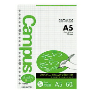 トでお届けします。●軽いタッチで、さらさらとなめらかに書けるA5の5mm方眼罫ルーズリーフの60枚×5パックセット。●キャンパスノートと同じようにタテ線が正確に引けるよう、センタ