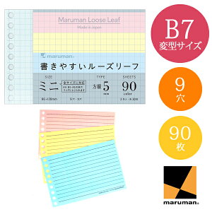 離島へのお届けは別途送料がかかります。詳しくはこちらマルマン B7変形サイズ ルーズリーフ 5mm方眼罫 3色 L1432-99(10セット)特徴:ファイルノートの全てのサイズに使えて、どの場所にも綴じられる、便利なメモサイズのル