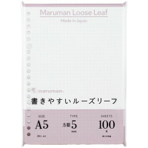 【商品名】 (まとめ) マルマン 書きやすいルーズリーフ B5判(26穴) 5mm方眼罫 100枚入 【×20セット】 【ジャンル・特徴】 インクのにじみが少なく、裏に透けにくい。 [ L1207H ]