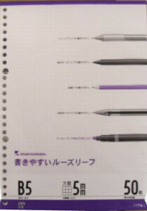 トでお届けします。●軽いタッチで、さらさらとなめらかに書けるA5の5mm方眼罫ルーズリーフの60枚×5パックセット。●キャンパスノートと同じようにタテ線が正確に引けるよう、センター