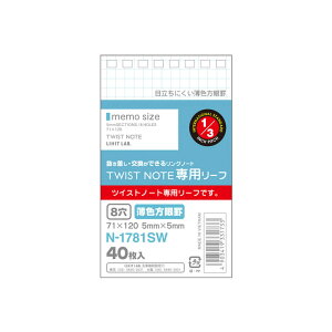 ツイストノート<専用リーフ・薄色5mm方眼罫>メモサイズ 1/3インチピッチシリーズ 【規 格】メモサイズ 8穴 【寸 法】幅・高さ:71mm × 120mm 【仕 様】5mm方眼 【材 質】上質紙 ※「ツイストノート...
