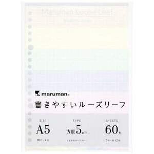 商品名マルマン A5 ルーズリーフ 書きやすいルーズリーフ 5mm方眼罫 50枚入り 学習 学生 社会人 資格説明マス目を目安に図や表に便利な方眼罫のルーズリーフ。学校で、ビジネスで、プライベートで、...