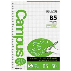 キャンパスルーズリーフ(さらさら書ける)5mm方眼罫 B5 50枚・筆記に最適なオリジナル原紙/「さらさら」「しっかり」どちらの原紙もにじみにくく、インクが裏に透けにくいコクヨオリジナル原紙を使用しています...