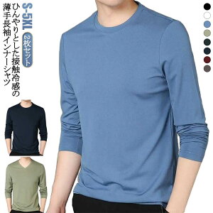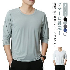 2枚セット!ひんやりとした接触冷感の薄手長袖インナーシャツ通気性優れた速乾素材!どんな動きにも最適なフィット!通気性が高く、汗をかいてもさらっと快適な着心地。簡単なデザイン、細かい仕上がり、シャツ、ジャケット、スーツは