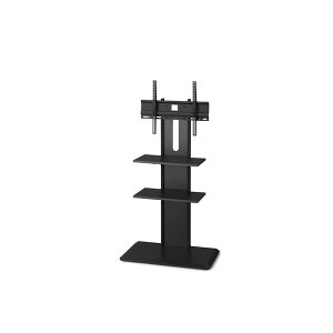 テレビスタンド 高さ調整可能で、全キャスターストッパー付、32型〜75型対応大型テレビ/モニタ/ディスプレイを設置可能。レコーダーやプレイヤーを設置できる棚板付。 ■材質:支柱-スチール(エポキシ樹脂粉体塗装) 棚板-MDF 脚フ