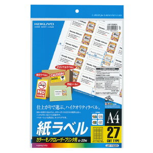 カラーレーザーラベルの定番■カラーまたはモノクロレーザープリンタ・コピー機に幅広く対応■白色度が高く、美しい仕上がり■プリンタ走行性に優れています。 コクヨ カラーレーザー&コピー用 紙ラベル (A4サイズ・27面・20枚) LBP-...