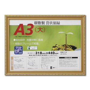【商品名】 樹脂製 賞状額 金ラック R 箱入 A3 大 収納寸法:318×440mm 賞状 額 表彰状 卒業証書 免許書 許可証 額縁 フレーム 【ジャンル・特徴】 樹脂額 賞状フレーム 卒業証書額...