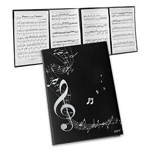 楽譜ファイル A3/A4サイズ楽譜ファイル互換 書き込みでき 楽譜/絵画ファイル 保管や整理 180°〜360°フリップ楽譜 A3横入れ 音楽モチーフラベル付き… (20ページ/40枚の楽譜, 黒)ブ...