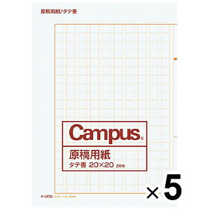 商品名まとめ買い コクヨ 原稿用紙 二つ折り A4 縦書き 20X20 罫色薄茶 20枚 5個セット説明●サイズ/A4 ●タテ・ヨコ/210mm・297mm ●字詰/縦書き(20×20)●枚数/20枚...