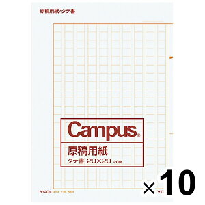商品名まとめ買い コクヨ 原稿用紙 二つ折り A4 縦書き 20X20 罫色薄茶 20枚 10個セット説明●サイズ/A4 ●タテ・ヨコ/210mm・297mm ●字詰/縦書き(20×20)●枚数/20枚...