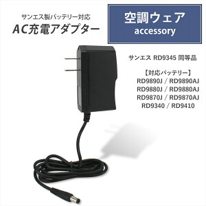 サンエス製バッテリー対応AC充電アダプター。●サンエス 空調風神服7V仕様 【 RD9340 】 【 RD9410 】の充電に対応したAC充電アダプターです。◆【 RD9345 】同等品対応。