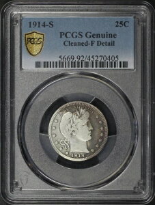 1914-S Barber Quarter PCGS F Details Cleaned商品について出品者メモ「詳細説明をご覧ください」認証:PCGS流通/非流通発行年:1914年造幣局所在地:サンフランシスコ刻印:ビジネス額面:25...