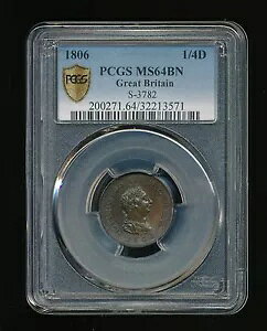 1806 Georgius III Great Britain Farthing 1/4D PCGS MS 64 Brown (BN) S-3782商品について循環/非循環 非循環1806年PCGS認証認証番号 32213571グレー...