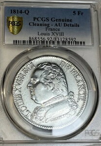 Rare France 1814 -Q Silver Five 5 Francs PCGS Certified AU Details Only 366,865商品について額面 5フラン流通/非流通 流通組成 銀発行年 1814年色 N...
