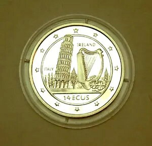 Proof Leaning Tower Pisa Italy Harp Silver 925 ?30mm 14ecu = Euro-商品について販売者メモ「in M?nzkapsel, mit Original-Zertifikat...