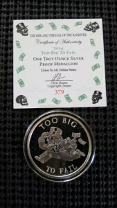 Silver Shield 1oz Rise & Fall Bankster 2014 Too BIG To Fail PROOF w/COA (Last 1)商品について組成:銀形状:ラウンド発行年:2014年純度:0.999単位あ...