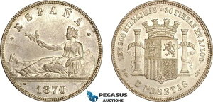 AI714, Spain, Provisional Government, 5 Pesetas 1870 (70) SNM, Madrid, XF-AU商品について認証 未認証グレード XF-AU注意...