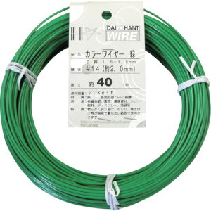 商品情報商品の説明ダイドーハント (DAIDOHANT) 針金 [ビニール被覆] カラーワイヤー グリーン ( 緑 ) [太さ] #12 (2.6 mm x [長さ] 36m 54013主な仕様 安全耐荷重:30kgf。なまし鉄線にP...