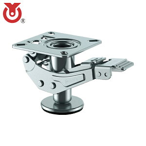 【商品詳細】 ●ワンタッチの簡単なペダル操作で台車を固定することができます。 ●内蔵スプリングの動きによって床面を押しつけてロックします。●内蔵スプリングの動きによって床面を押しつけてロックします。 ●適正取付高さ