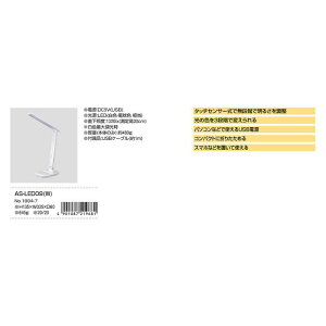 [商品名]ELPA(エルパ) LEDデスクライト AS-LED09(W)代引き不可商品です。代金引換以外のお支払方法をお選びくださいませ。コンパクトに折りたため、タッチセンサー式で無段階で明るさを調整できます...