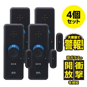 エルパ ELPA 窓ピタッアラーム 衝撃&開放検知4P ASA-W13-N4P W。●ガラスの破壊・衝撃が窓の開放を検知すると大音量のアラーム(約90dB/50cm)が鳴ります。●ガラスの破壊・衝撃を検知した場合と...