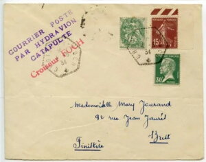 France 1934 COURRIER POSTE PAR HYDRAVION CATAPULTE Croiseur FOCH to Brest商品について出品者メモ「スキャン画像をご覧ください。封筒に横じわがあります。粘着面に若干...