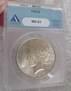 1925 $1 Peace Dollar ANACS MS-63 Great Appeal Bright! Blue Holder商品について流通/非流通 非流通額面 1ドルコイン ピース組成 銀発行年 1925年鋳造タイプ ビジネス...