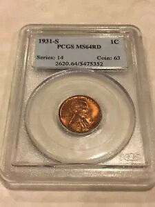 1931-S PCGS MS64RD 1C Lincoln Cent Penny RED!! PQ!! Great Appeal!! OBL Low Ser #商品について流通/非流通 不明額面スモールセントコインリンカーン小麦構成ゴ...