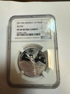 2011 Proof 1/2 Onza Mexico Libertad Plata Pura NGC PF 69 Ultra Cameo slab商品についてメキシコ・リベルタッド硬貨組成:銀発行年:2011年刻印の種類:プルーフ純度...