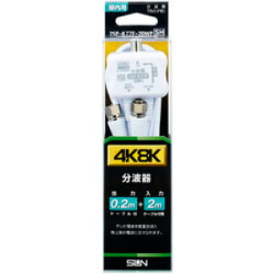 サン電子 2SP-K77F-P 4K8K対応分波器 出力0.2m 白。●4K8Kはもちろん、現在放送中の全ての放送に対応高シールドで安心、従来の2K放送にも対応。●ケーブル部はやわらか、スリムケーブルを使用。