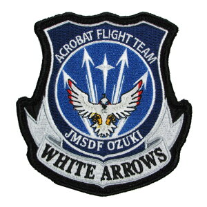 海上自衛隊のパイロット等の養成機関である「小月航空基地」に所属する教官たちによる、海上自衛隊唯一の特別曲技飛行チーム「WHITE ARROWS -ホワイトアローズ -」のツナギ等に付けるホワイトアローズのサブワッペンです。 パイロットがネ