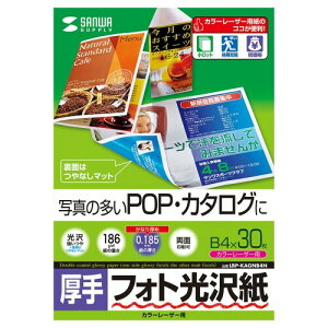 カラーレーザー用フォト光沢紙・厚手 B4 30シート入り LBP-KAGNB4N 【サイズ】:B4(257×364mm) 【入り数】:30シート 【厚み】:0.185±0.015mm 【重量】:186g/m2...