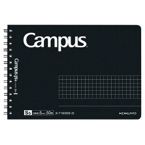 ツインリング ノート 大人キャンパス ハーフサイズ 方眼罫 B6変形 ブラック 50枚 ス-T193S5-Dタブレット端末やパソコン前の省スペースで使えるハーフサイズのキャンパスノート(方眼罫)サイズ ...