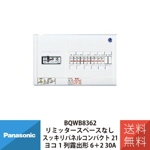パナソニック BQWB8362 電設資材 住宅分電盤 スッキリパネル コンパクト21 リミッタースペースなし ヨコ1列タイプ 露出形 6+2 30A。