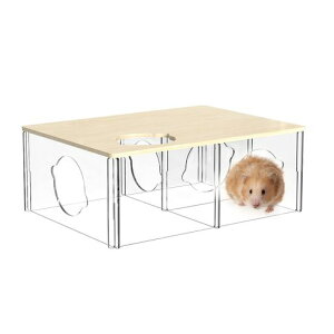 インドア 【クリアハウスで見えやすい】クリアタイプは中のハムスターがしっかり観察できます。透明色なのでケージ内のインテリアになじみやすい。ご注意:このアクリルのハウスは全透明です。すべでのアクリルパネルには保護シールが