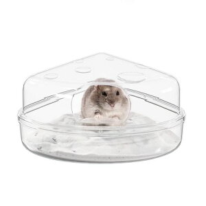 【かわいいチーズのデザイン】三角形のチーズのデザインのトイレで、かわいく面白くしてくれます。全面クリアのトイレで、浴び砂の上を気持ちよさそうに転がるハムスターを心ゆくまで眺めることができます。 【高品質お手入れ簡単】高