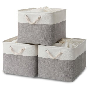 収納かご 3個セット 幅40×奥行30×高さ24cm 巾着式ふた付き 折りたたみ 大容量 収納ケース おしゃれ 天然綿麻 無臭 服/小物/衣類/CD/DVD/マンガ/書類/おもちゃ クローゼット収納箱 引き出し...