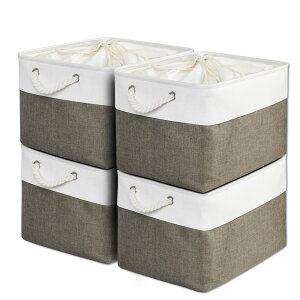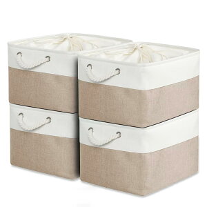 収納かご 4個セット 幅40×奥行30×高さ24cm 巾着式ふた付き 折りたたみ 大容量 収納ケース おしゃれ 天然綿麻 無臭 服/小物/衣類/CD/DVD/マンガ/書類/おもちゃ クローゼット収納箱 引き出し...