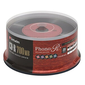 [Verbatim 音楽用CD-R 80分 20枚入り Phono-R MUR80PHS20V1] の商品説明レコード盤デザイン。5カラーミックス。[Verbatim 音楽用CD-R 80分 20枚入り Phono-R...